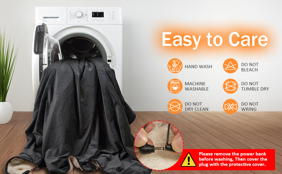 The care instructions are designed to protect the heating elements while keeping the soft polyester fabric in great condition.